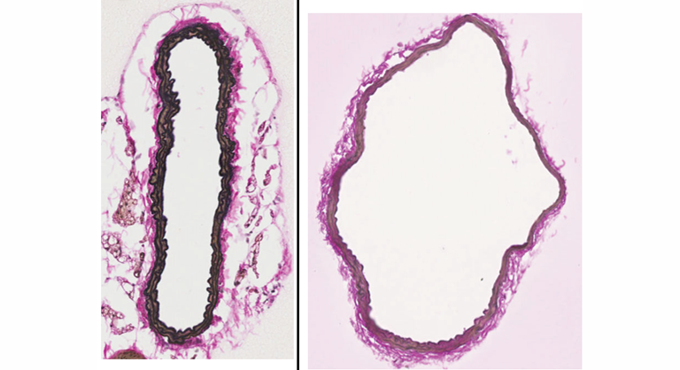 After three months, the researchers placed arterial tissues from a younger BMT group under a microscope for closer examination. This time, rather than looking at the lumen, they evaluated the perimeter and thickness of artery walls, finding more evidence that early transplants protected tissue from pathological changes.